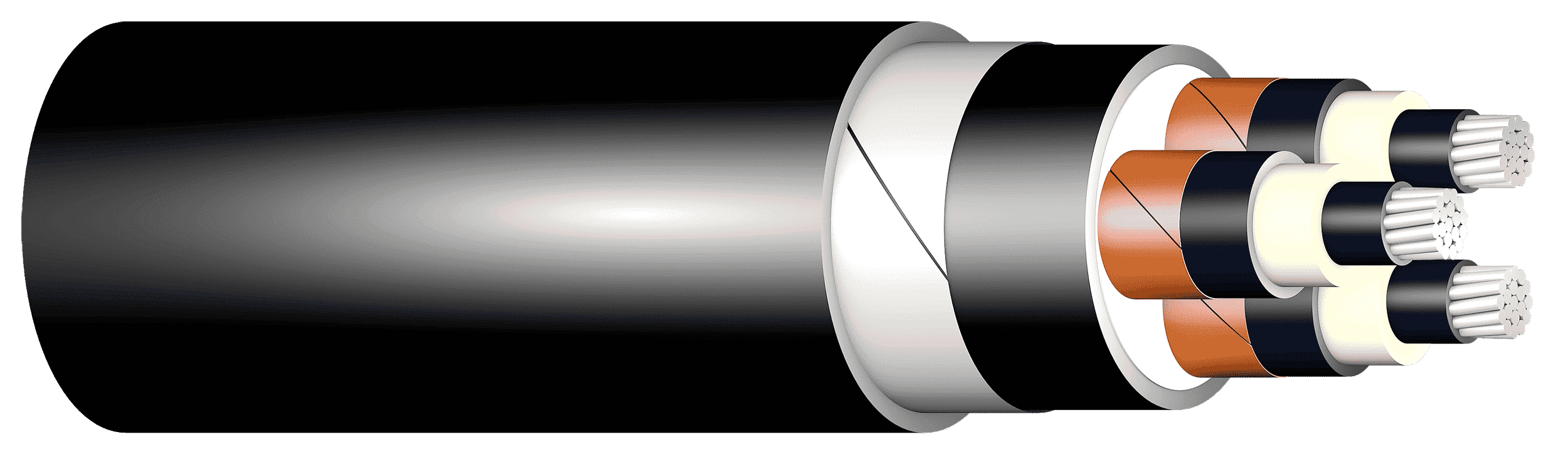 18/30 كيلوفولت، ألومنيوم، 3 نواة كابل مصفح بشريط فولاذي مصفح